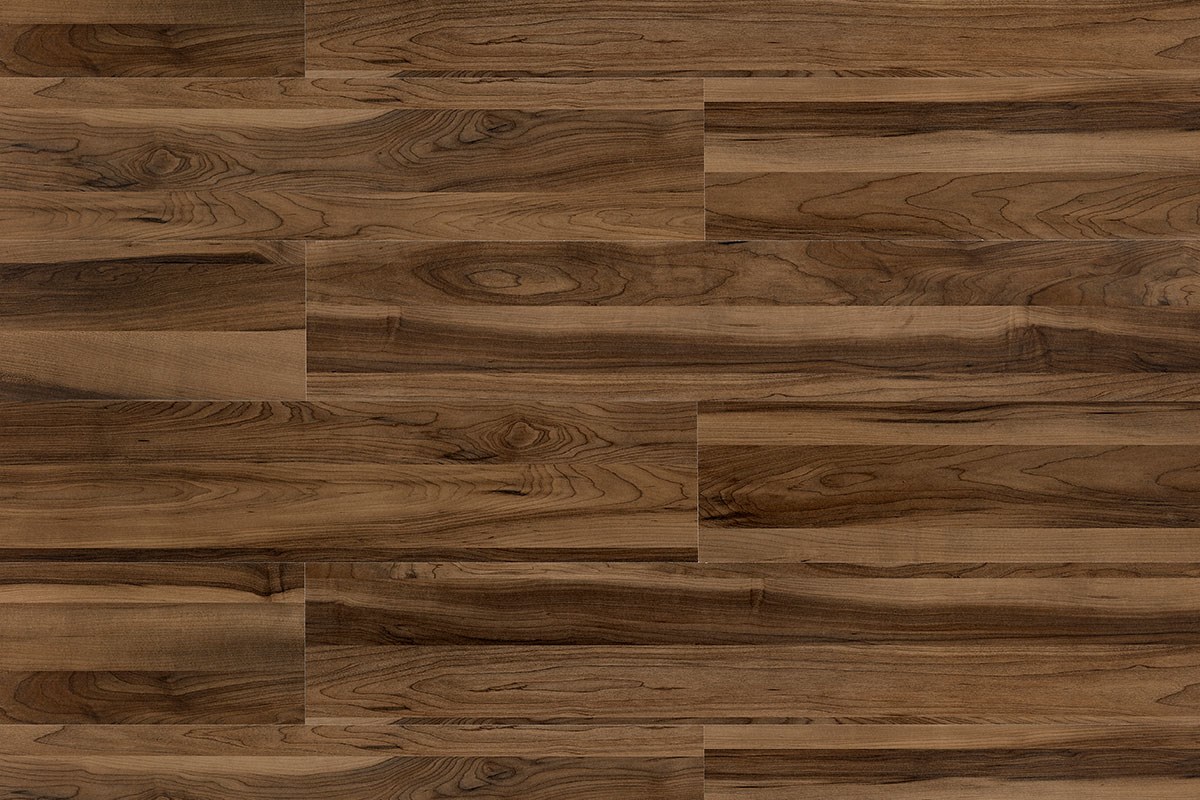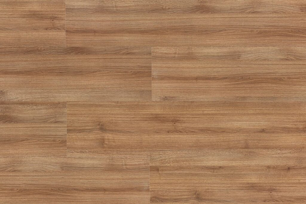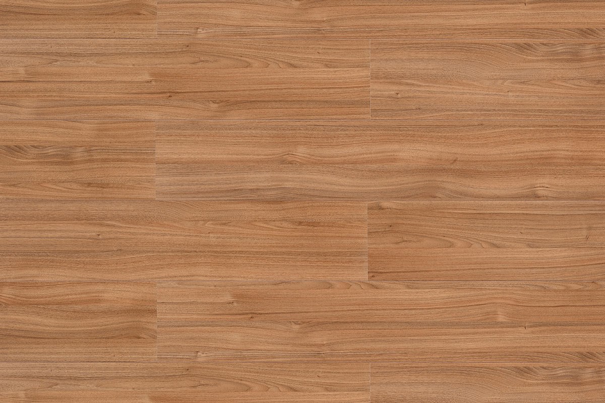 Piso laminado de madeira em HDF, possui superfície em relevo cristal com brilho e acabamento em overlay.